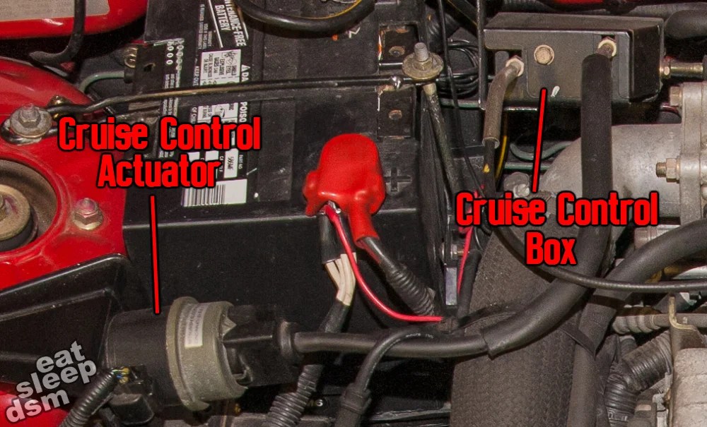 A cable connects the cruise control actuator to the cruise control box. The cruise control box is bolted to the firewall. Once the actuator is unbolted, you can then unbolt the cruise control box.