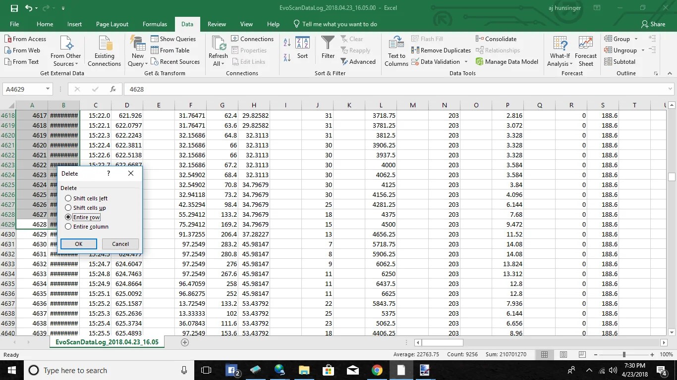 Step 5-Â Now you can pick out which pull you want to look at and delete everything else. Simply highlight all the rows above and below the pull you want to look at.