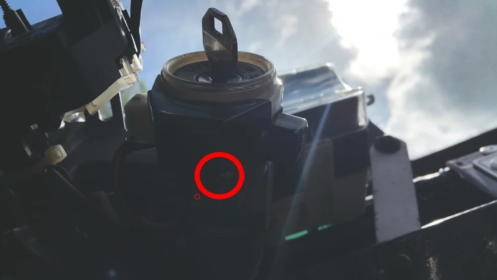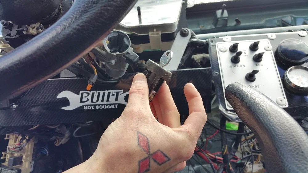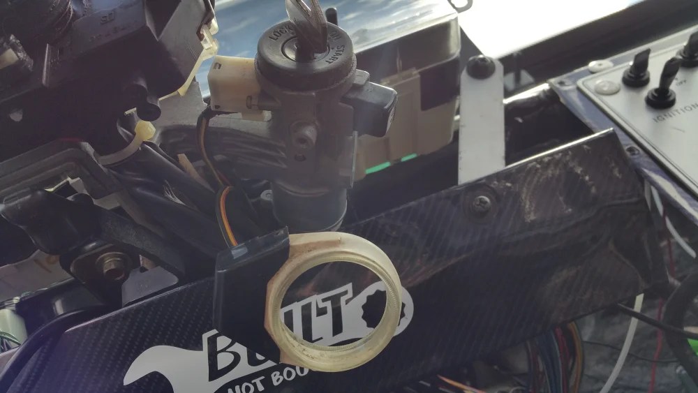 If you decide to eliminate the need to use your key, you should begin by removing your key lock and cylinder. I don’t really want to get into too much detail on the process of removing your key cylinder, but I did take a few pictures to help you through it. You can also unplug your ignition switch and leave the key in the ON position.