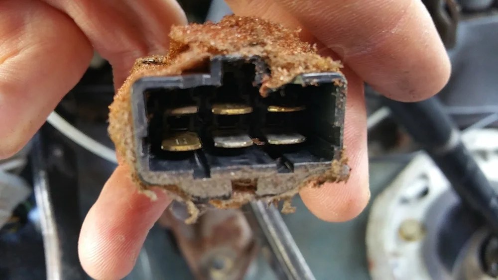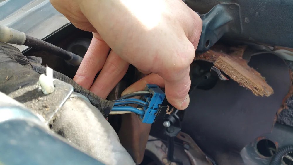 The blue plug (shown above) is the plug you need to compare wire colors to in the previous pinout diagram.