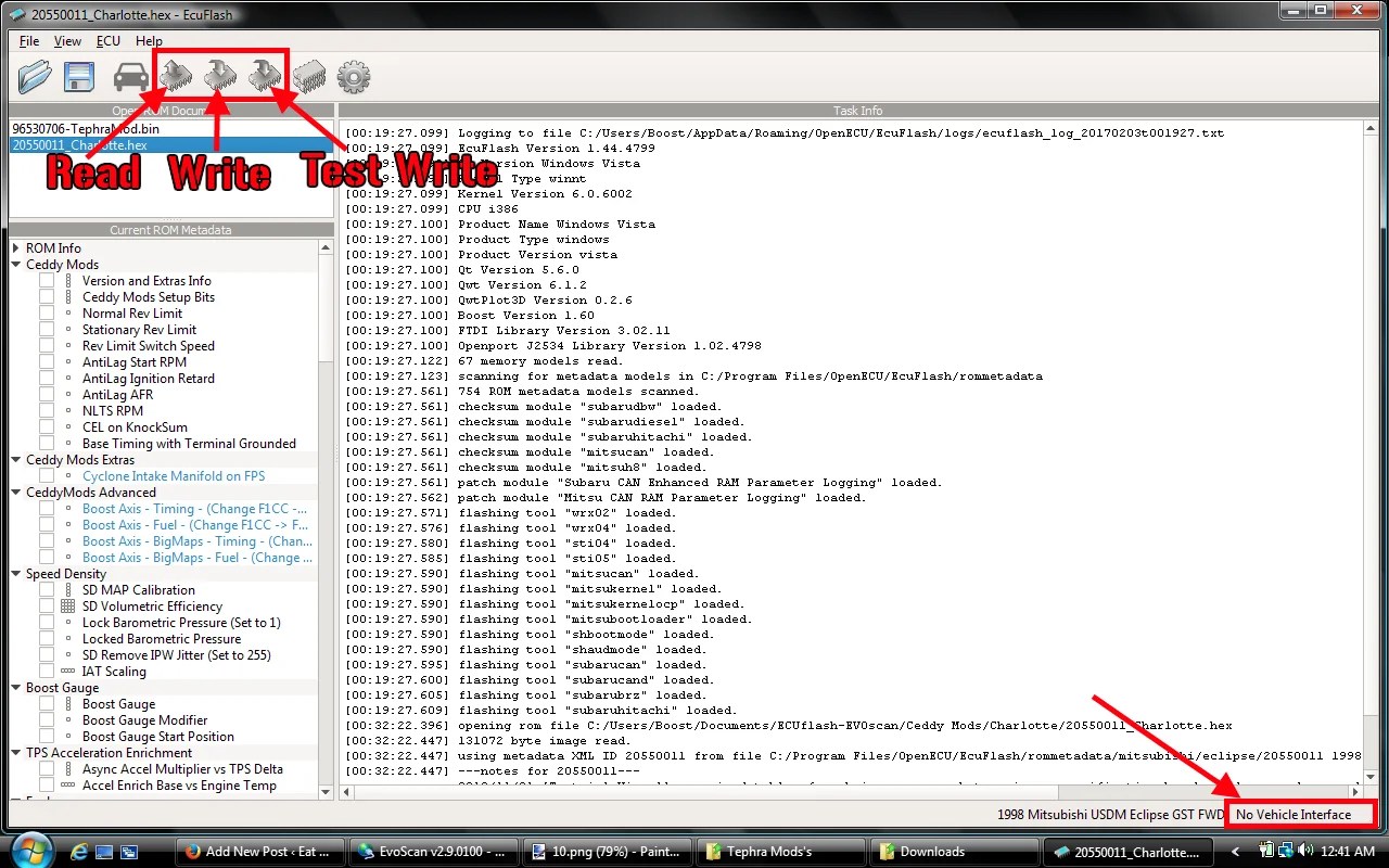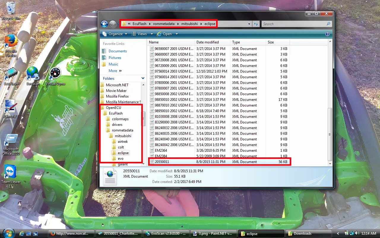 If you are using a 2G Blackbox, you need to put the Ceddy Mods 20550011.XML file inside the C:Drive/ProgramFiles/OpenECU/ECUflash/rommetadata/mitsubishi/eclipse folder. Download HERE.