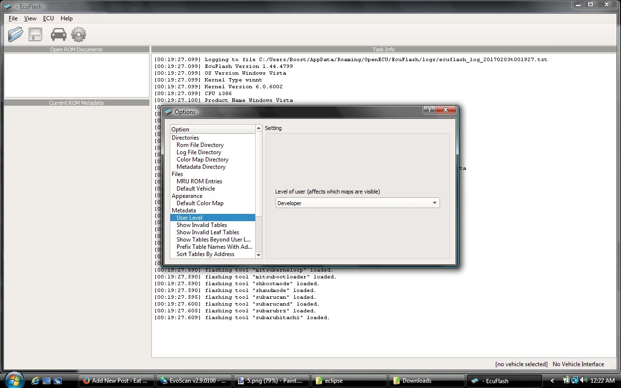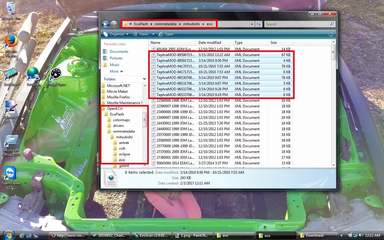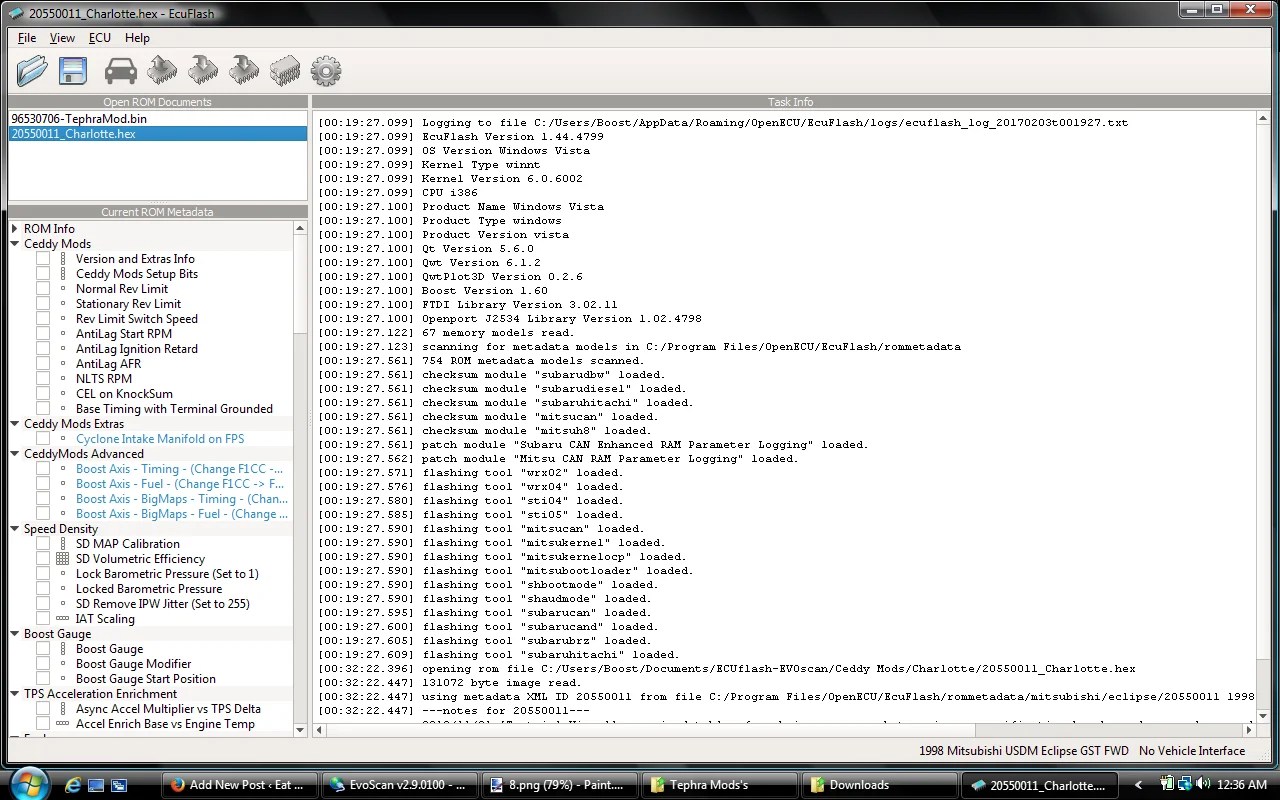 If you are using an Evo ECU, you need to add all the Tephra Mod .XML files into the C:Drive/ProgramFiles/OpenECU/ECUflash/rommetadata/mitsubishi/evo folder. Download HERE.