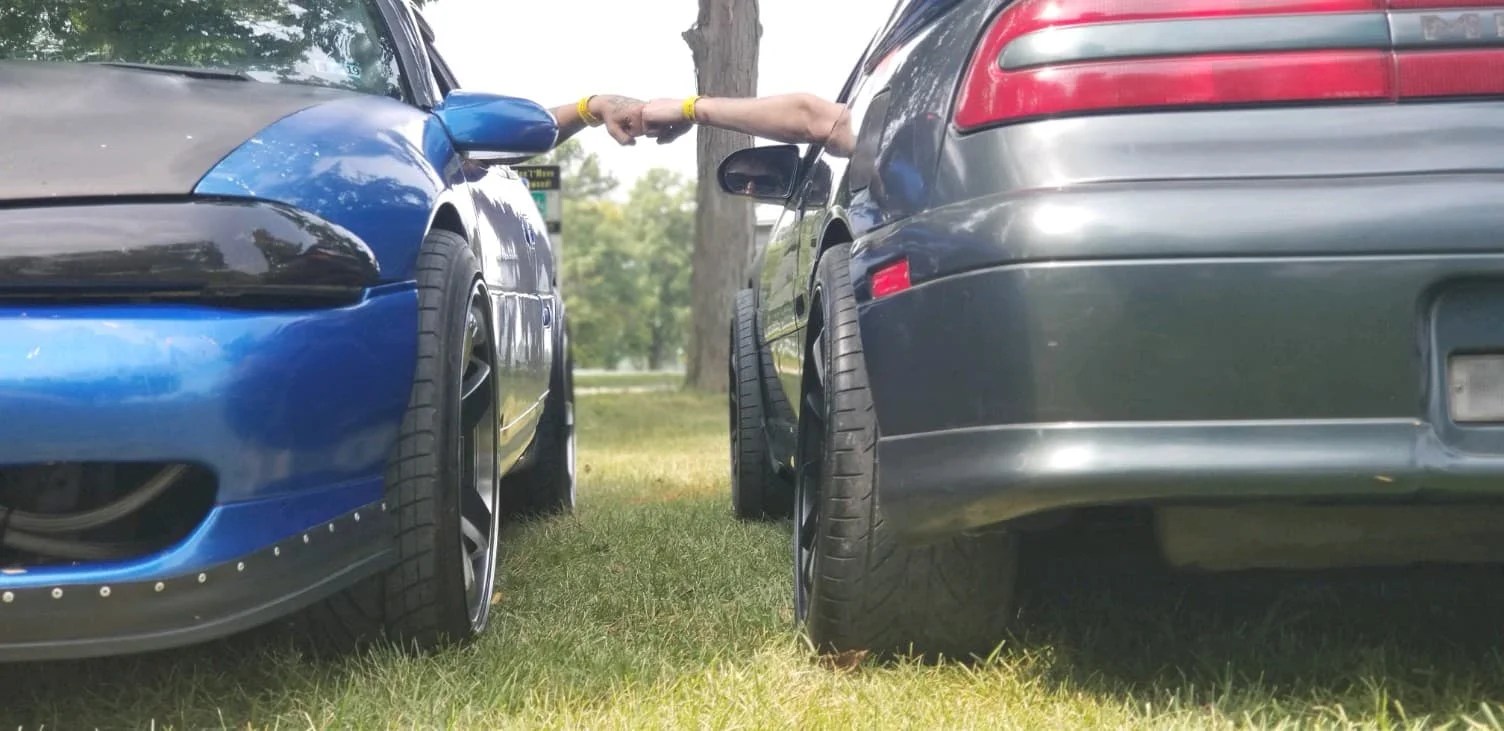That next morning, we woke up to the sound of the track announcer and some antilag. I rushed over to the track to grab a shower and then we began walking around. Sam took one of our Eat Sleep DSM decals to the Kiggly Racing team. They agreed to put our decal on their car. That was a big moment for us. They are a great group of people and it was an honor meeting them.